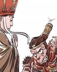 In the original version, it’s also very clear that Sanzang, his master actually cares. “Seeing the state he was in, Sanzang had to stop, and the pain stopped again too” (Chapter 14). In other renditions, the tightening goes on until Sanzang feels like it, not when Sun Wukong in too much pain. In the original version, it’s not even clear that the “band” can cause a lethal amount of pain, but in subsequent renditions, its ability to cause Sun Wukong’s head to explode is over emphasized.